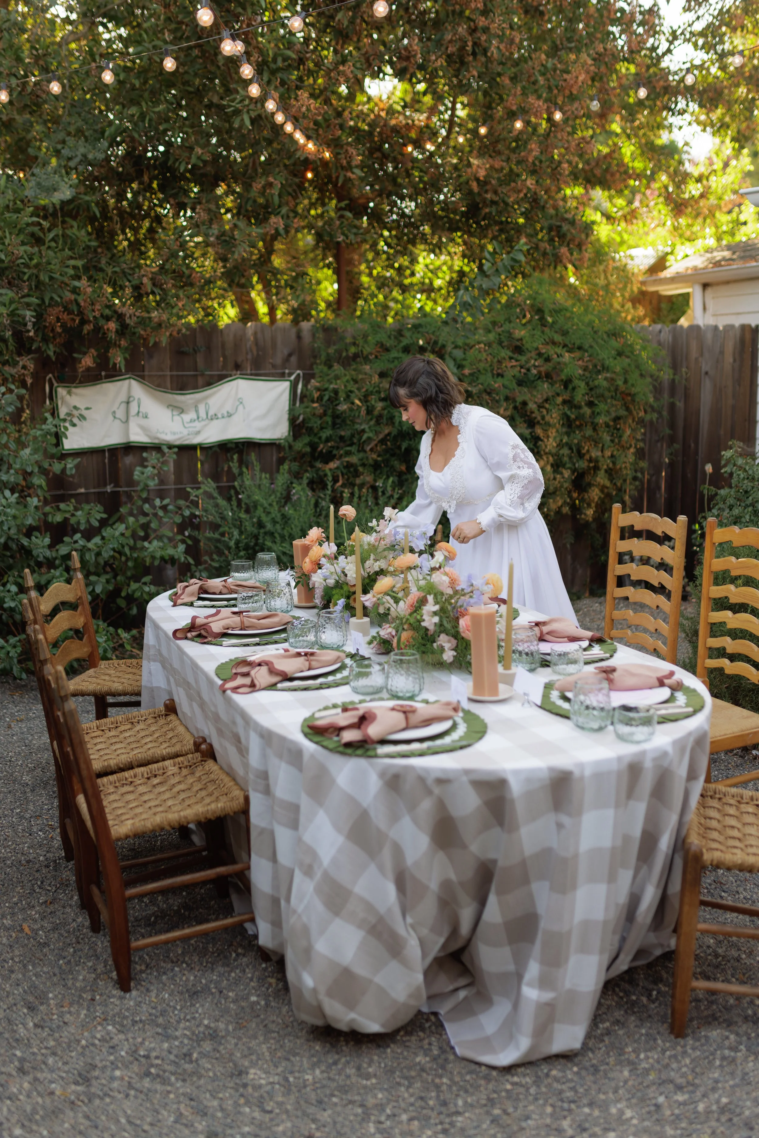 We leaned into a lot of textural blooms, unexpected greenery, and even played off of elements from their backyard garden to make the space feel more like a thoughtfully styled home than a traditional wedding setup. We wanted to create arrangements that were deeply curated, while still feeling effortless and not overdone.